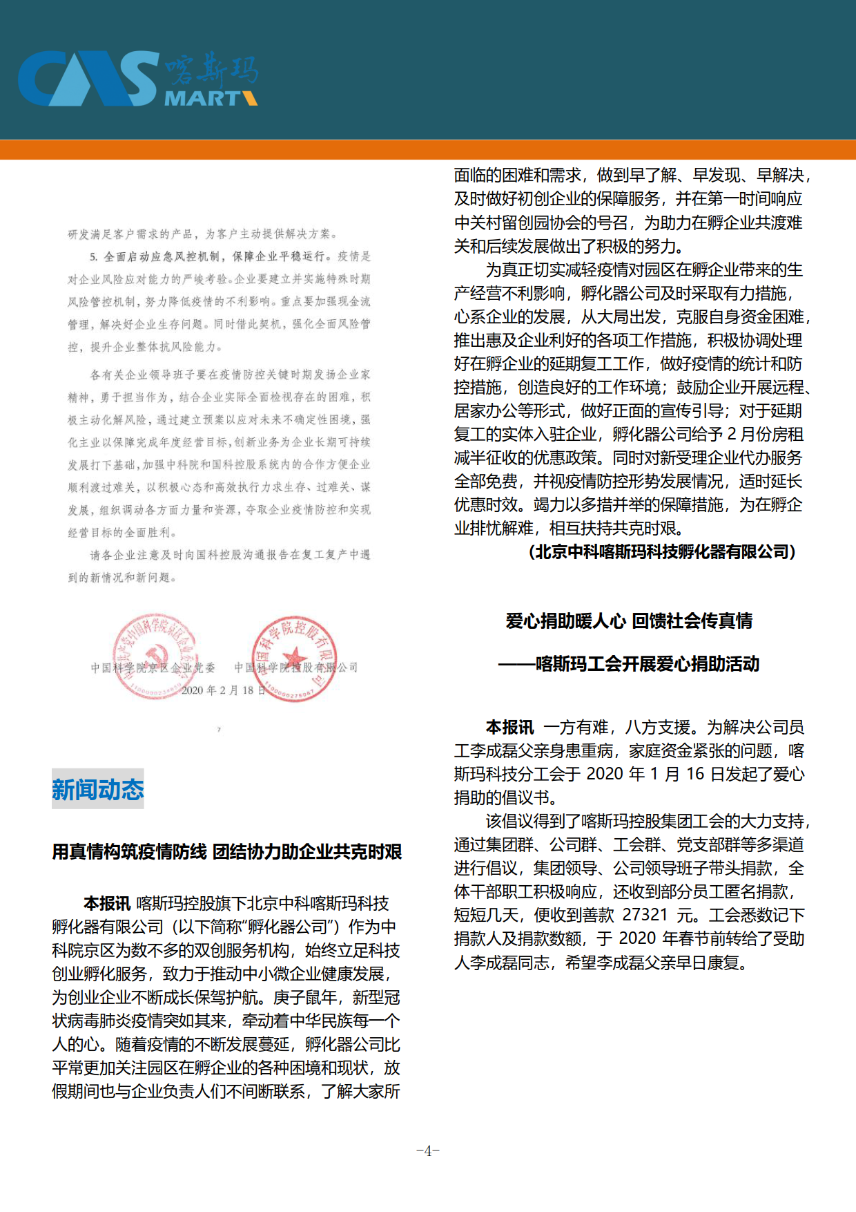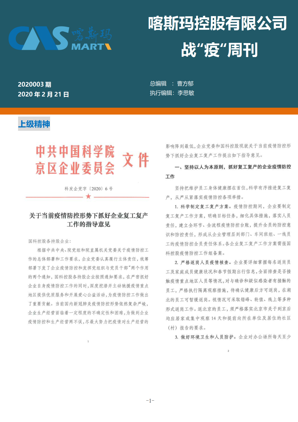 喀斯瑪控股有限公司戰(zhàn)“疫”周刊2020003期