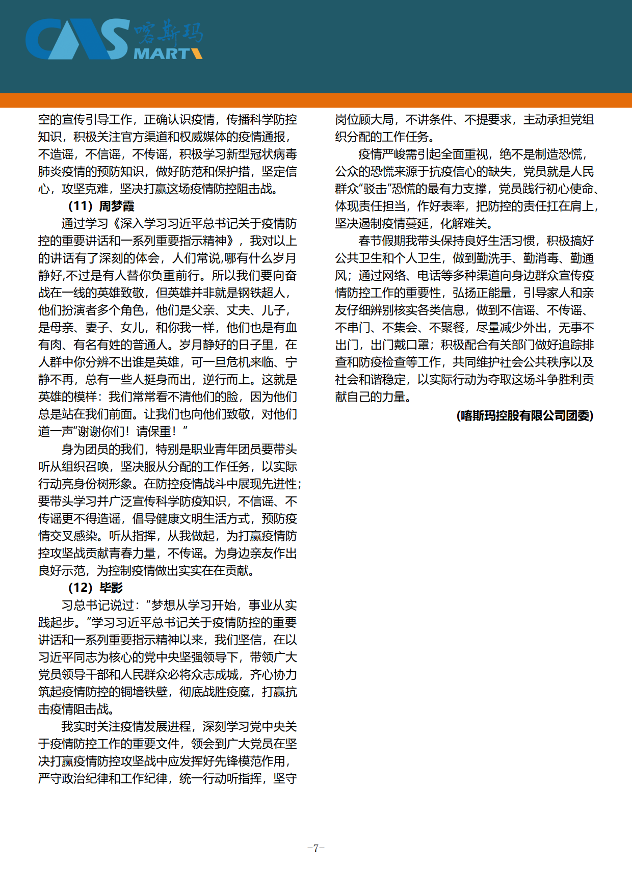 喀斯瑪控股有限公司戰(zhàn)“疫”周刊2020005期